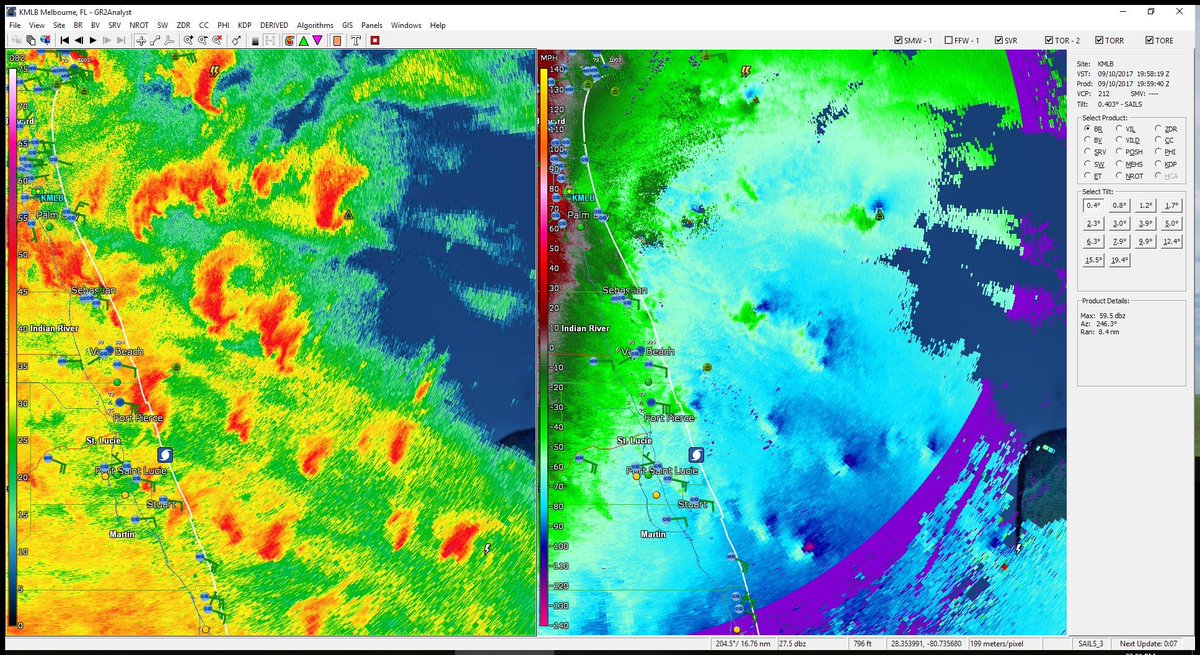 Amazing embedded supercell structures in hurricane #Irma. Many waterspouts likely!