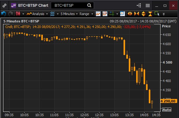 #Bitcoin plunges by almost 7% as #China to shut local Bitcoin exchanges, local media reports. http://finance.caixin.com/2017-09-08/101142797.html …