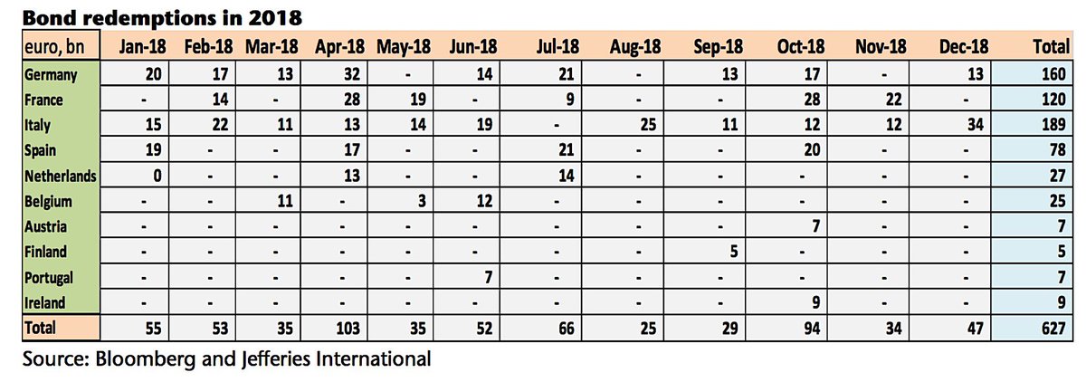 This chart shows that #ECB is more active in markets than its headline QE purchases indicate as it reinvests maturing bonds. (via Jefferies)