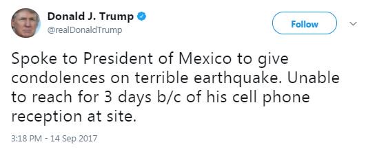 JUST IN: President Trump tweets he spoke to president of Mexico to give condolences after deadly earthquake