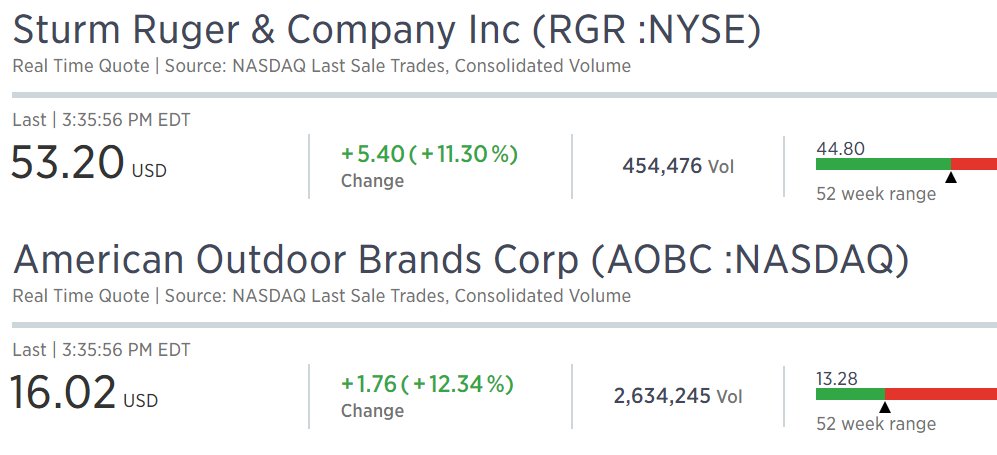 Gun stocks jump after Reuters reports Trump is preparing to ease rules for overseas sales of US guns http://cnb.cx/2jJYmG6