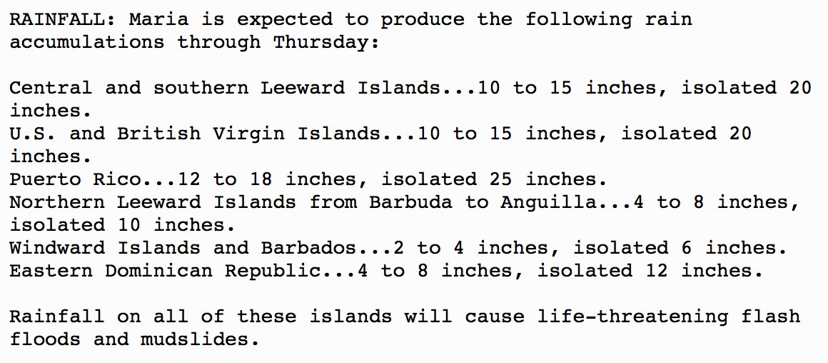 Here is the latest storm surge and rainfall information for Hurricane #Maria http://www.nhc.noaa.gov/text/refresh/MIATCPAT5+shtml/192043.shtml …