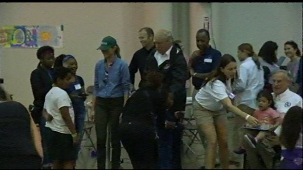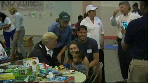 Pres & Mrs Trump at storm shelter in Houston meeting with evacuees.