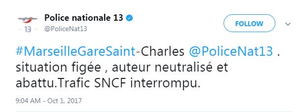 Developing: French police say situation at Marseille train station is over, perpetrator has been neutralized