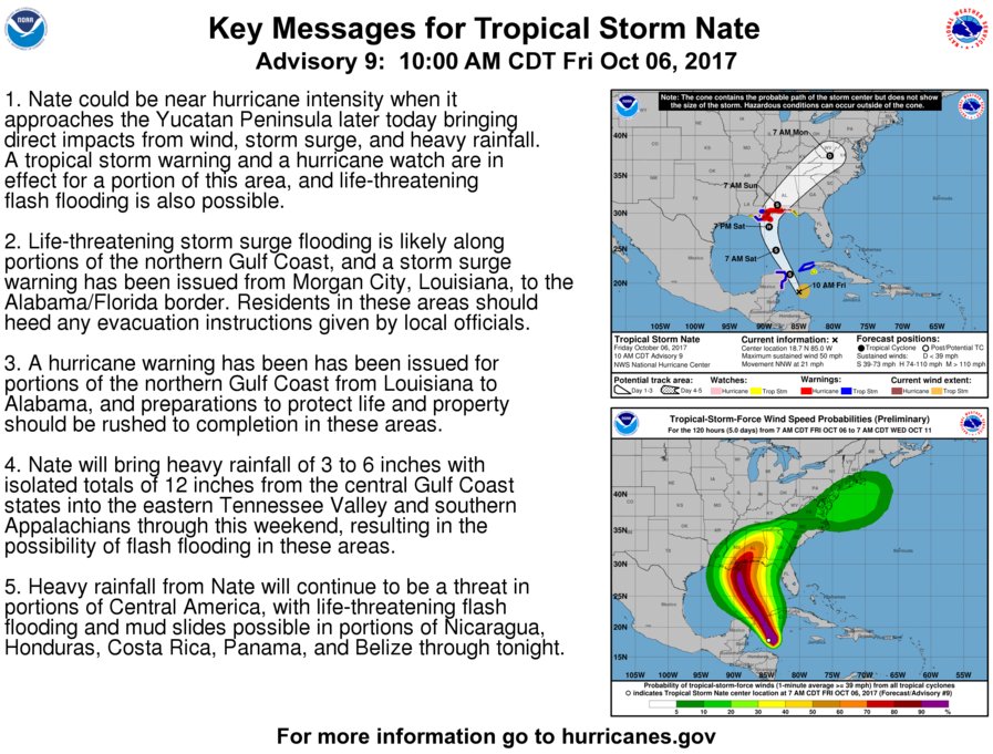 Here are the key messages for Tropical Storm #Nate for Advisory 9. http://hurricanes.gov