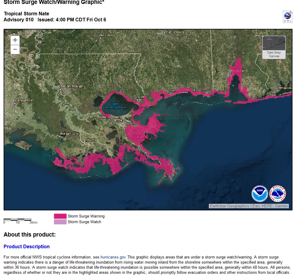 Hurricane & Storm Surge Warnings posted. #LAwx #MSwx #Nate