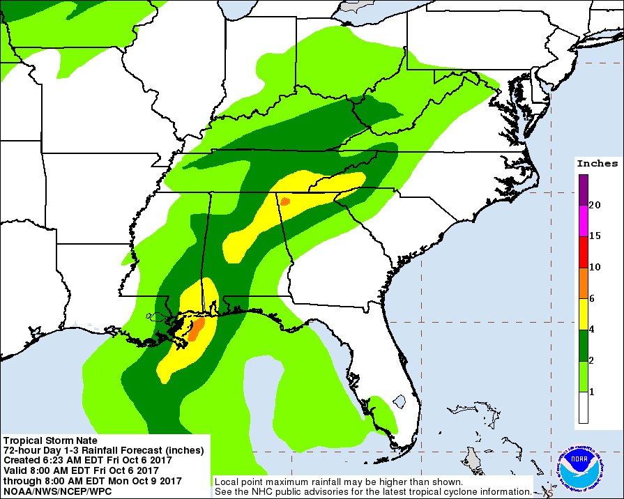 T.S. Nate will bring heavy rainfall to parts of the southeast and Appalachians over the weekend. Flash flooding possible across the region.