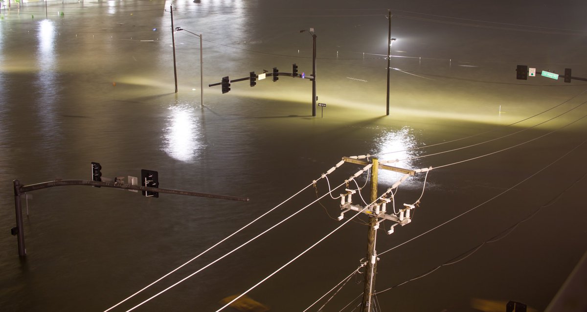 As day breaks, we can finally see the storm surge covering the Causeway over Mobile Bay via the