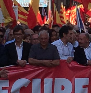 Josep Borrell (Catalan Socialist Party, PSC) is also at the head of the march in Barcelona today.