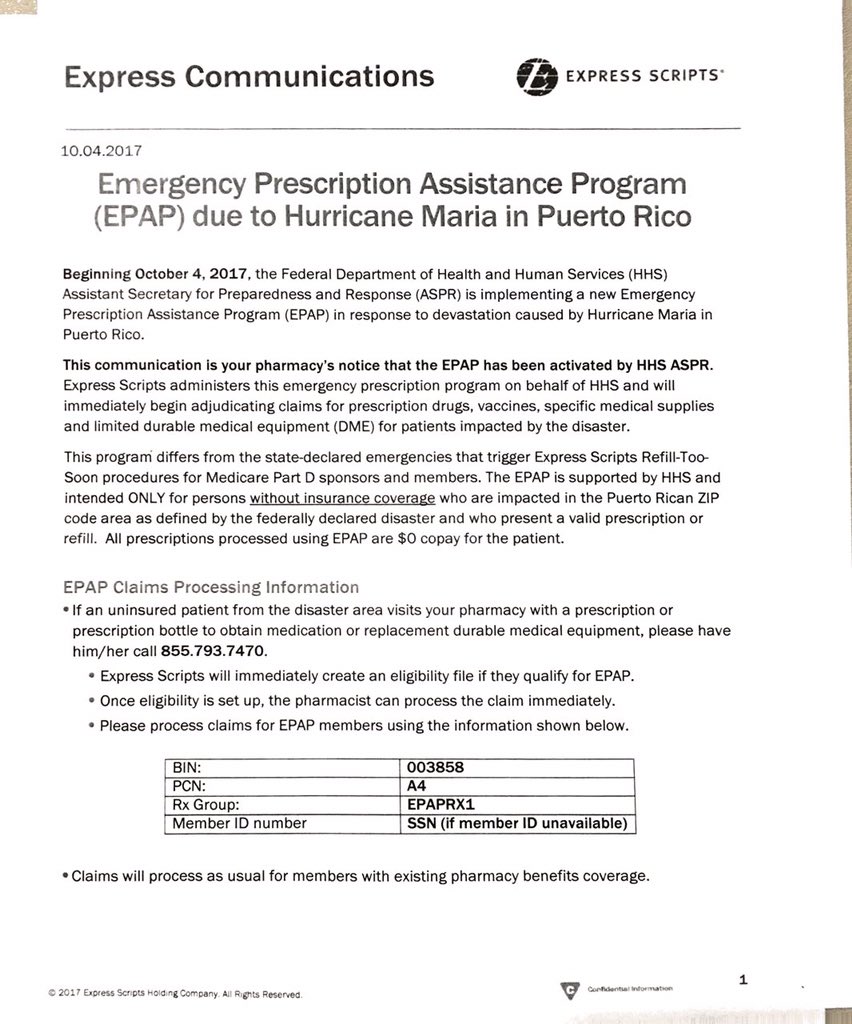 Thanks to HHS for implementing an Emergency Prescription Assistance Program for Puerto Rico #PRStrong